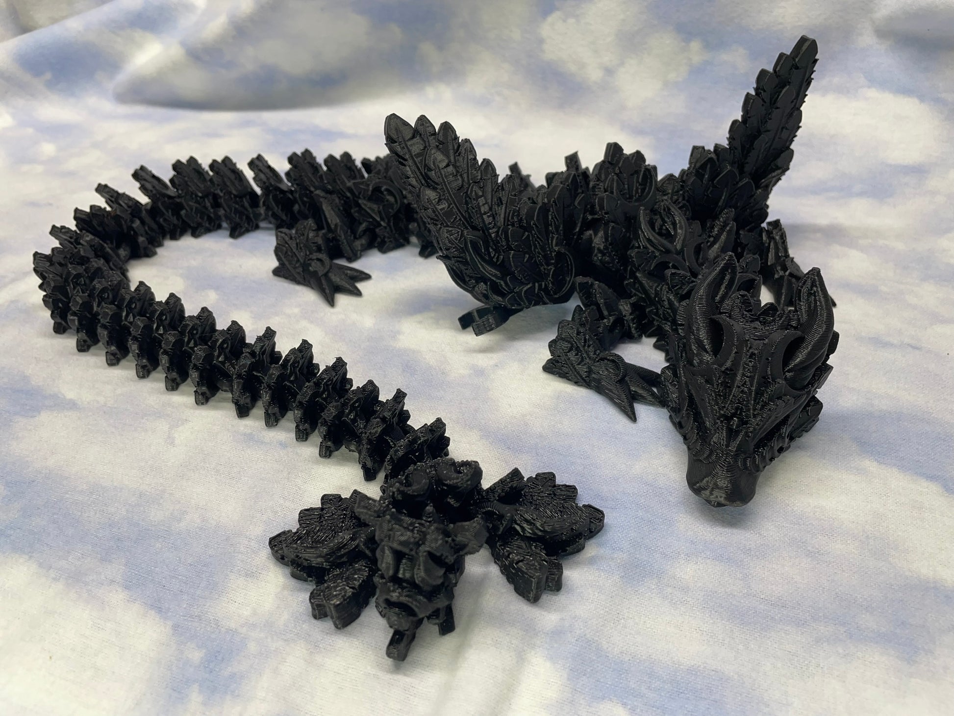 The Lunar Wing Dragon is roughly 24 inches long and is currently the longest dragon I have available.